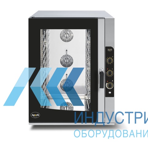 Печь имеет 10 уровней загрузки противнями размером 600х400 мм. Расстояние между уровнями 80 мм. За счет нагревательных элементов и встроенных автоматических реверсивных вентиляторов, при работе печи Apach AB10M воздушный поток распределяется равномерно в камере, что благоприятно влияет на приготовление блюда. У вентиляторов две скорости, которые переключаются вручную. А реверсивное движение вентиляторов включается автоматически. Уровень влажности устанавливается и регулируется вручную. Есть термостат, контролирующий уровень нагрева печи. С помощью регулятора выставляется время, необходимое для выбранной операции.