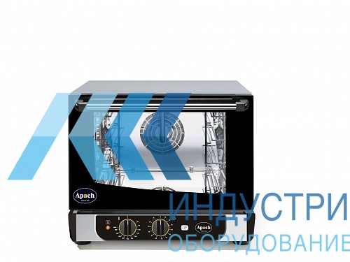 Печь имеет 3 уровня загрузки противнями размером 470x340 мм (GN 2/3). Расстояние между уровнями 80 мм. За счет нагревательных элементов и встроенных вентиляторов, при работе печи Apach AD34M воздушный поток распределяется равномерно в камере, что благоприятно влияет на приготовление блюда. У вентилятора одна скорость. Впрыск пара в камеру происходит после нажатия кнопки. Есть термостат, контролирующий уровень нагрева печи. С помощью регулятора выставляется время, необходимое для выбранной операции.