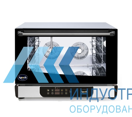 Печь имеет 4 уровня загрузки противнями размером 600x400 мм (GN 1/1). Расстояние между уровнями 80 мм. За счет нагревательных элементов и встроенных реверсивных вентиляторов, при работе печи Apach AD46D воздушный поток распределяется равномерно в камере, что благоприятно влияет на приготовление блюда. Уровень влажности устанавливается и регулируется вручную. Для готовки используются 99 программ по 3 этапа приготовления.