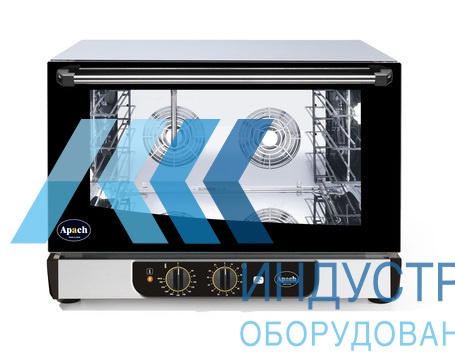 Печь имеет 4 уровня загрузки противнями размером 600x400 мм (GN 1/1). Расстояние между уровнями 75 мм. За счет нагревательных элементов и встроенных вентиляторов, при работе печи Apach AD46MP ECO воздушный поток распределяется равномерно в камере, что благоприятно влияет на приготовление блюда. У вентилятора одна скорость. Впрыск пара в камеру происходит после нажатия кнопки. Есть термостат, контролирующий уровень нагрева печи. С помощью регулятора выставляется время, необходимое для выбранной операции.