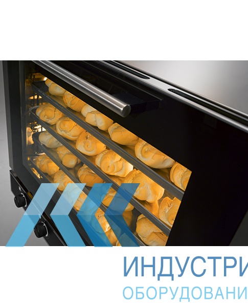 Конвекционная печь выполнен из нержавеющей стали. Внутренняя обшивка камеры также сделана из нержавейки, углы закруглены. Распашная дверца из двойного термостойкого стекла. Для наилучшего контроля процесса приготовления предусмотрена подсветка камеры. Тип пароувлажнения - инжекторный с пятью уровнями влажности. Осуществляется прямой впрыск воды. Очень удобная и простая аналоговая панель управления.