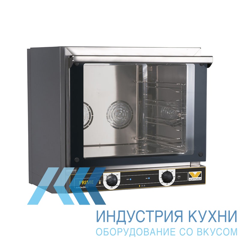Печь конвекционная Vortmax PC443M+Pх443 используется в сфере общественного питания для приготовления разнообразных хлебобулочных изделий и гастрономии. Равномерное распределение нагретого воздуха по камере происходит при помощи вентиляторов, вращающихся в разных направлениях. В этой модели их два. Пароувлажнения в печи нет. Корпус и камера печки сделаны из нержавеющей стали. Дверца стеклянная, чтобы повар в любой момент мог увидеть, как идет процесс готовки.