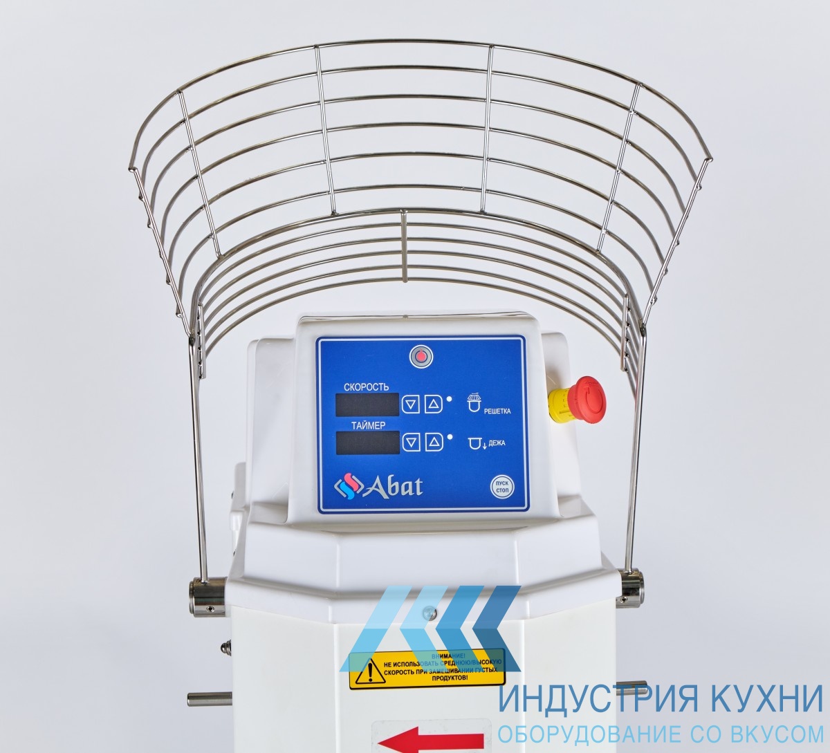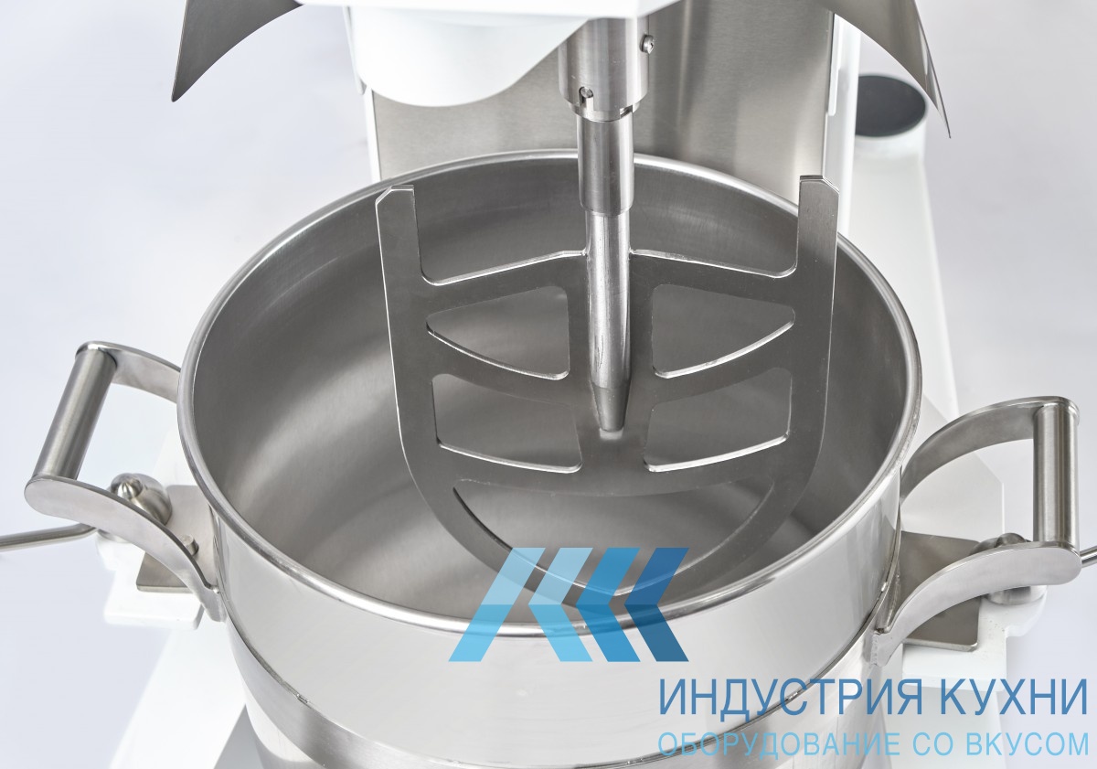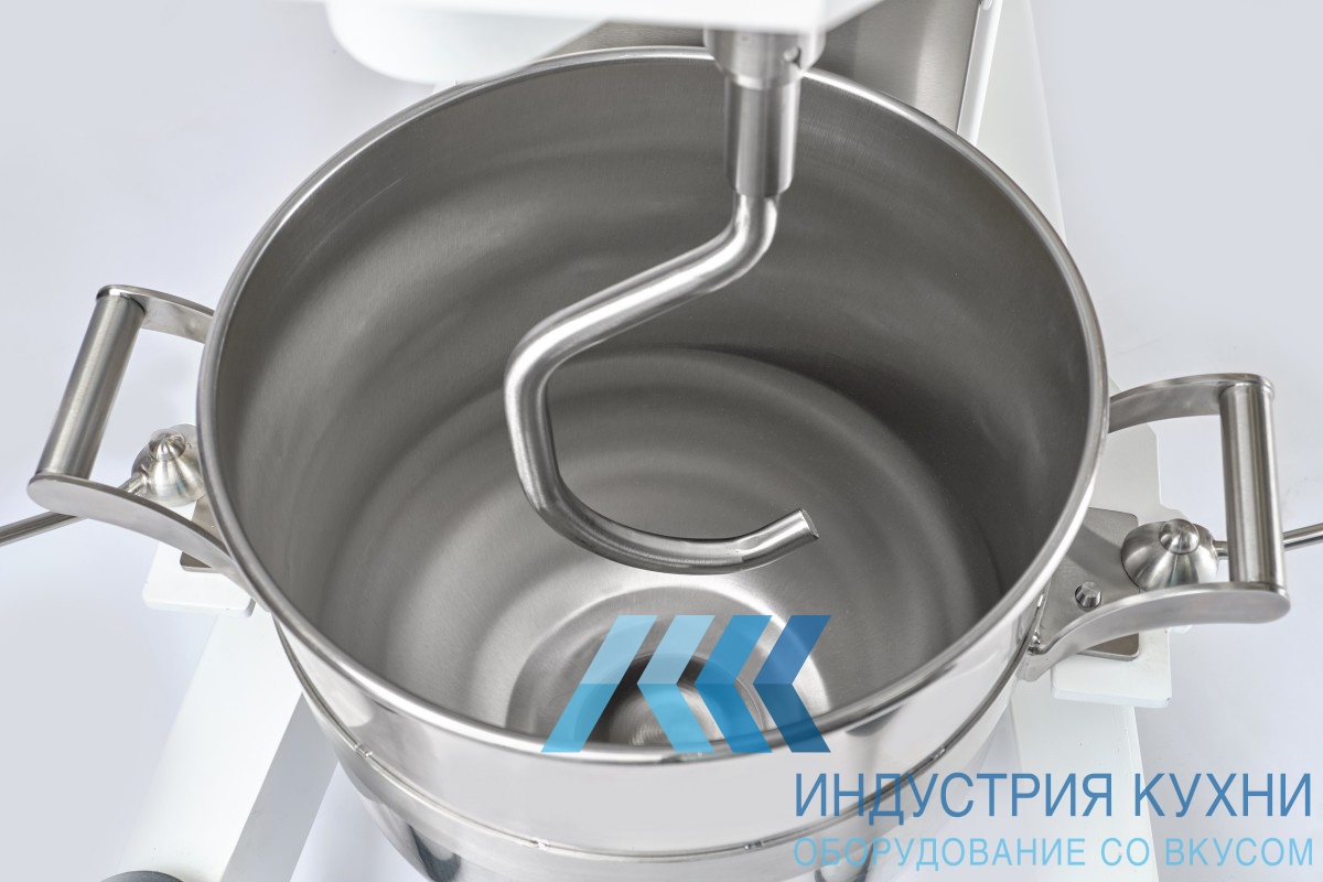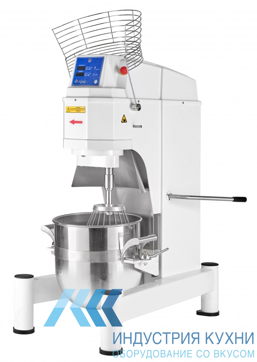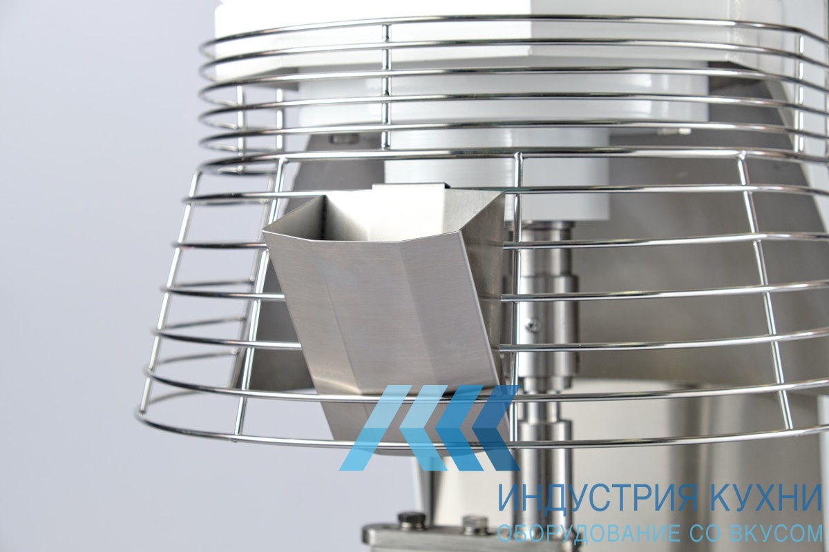Это агрегат с съемной дежой и фиксированной траверсой. Дежа сделана из нержавеющей стали AISI 304. Управление осуществляется через электронную панель. Для начала работы просто подключите миксер к электросети. Сверху дежа закрывается защитной решеткой. Через решетку можно добавить дополнительные ингредиенты. Если решетку поднять, работа миксера автоматически остановится.