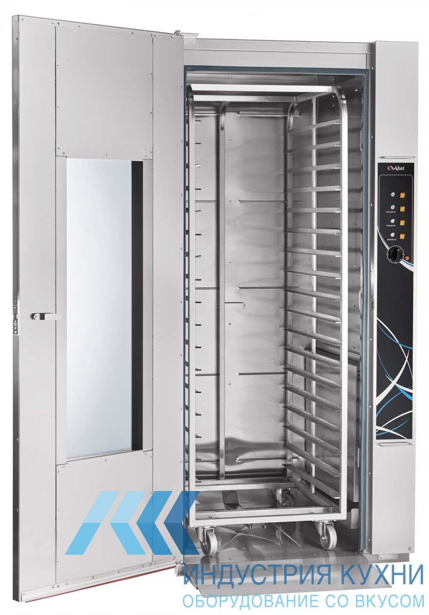 Шкаф расстоечный Abat ШРТ-18М используется для расстойки кондитерских и хлебобулочных изделий. Шкаф можно эксплуатировать как отдельно, так и совместно с ротационными шкафами типа РПШ-18-8-6. Вентилятор вынесен из зоны нагрева, он равномерно нагревает воздух внутри камеры. Шкаф разогревается до рабочей температуры +40С за 15 минут.