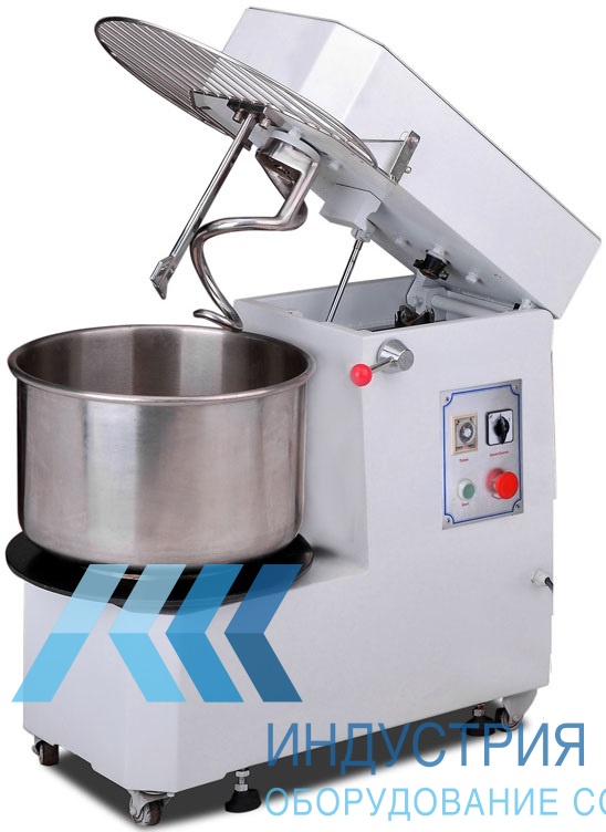 Дежа аппарата съемная, сверху она закрывается металлической решеткой. Головная часть тестомеса поднимается. Таким оборудованием пользоваться очень удобно.Тестомес установлен на регулируемые ножки, а для перемещения можно использовать колеса.