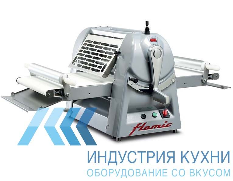 Это настольное оборудование, подойдет для работы в том числе на небольших предприятиях, в пекарнях, кондитерских. Оптимальный вес теста для слоения для настольных моделей составляет 2 – 3 кг.