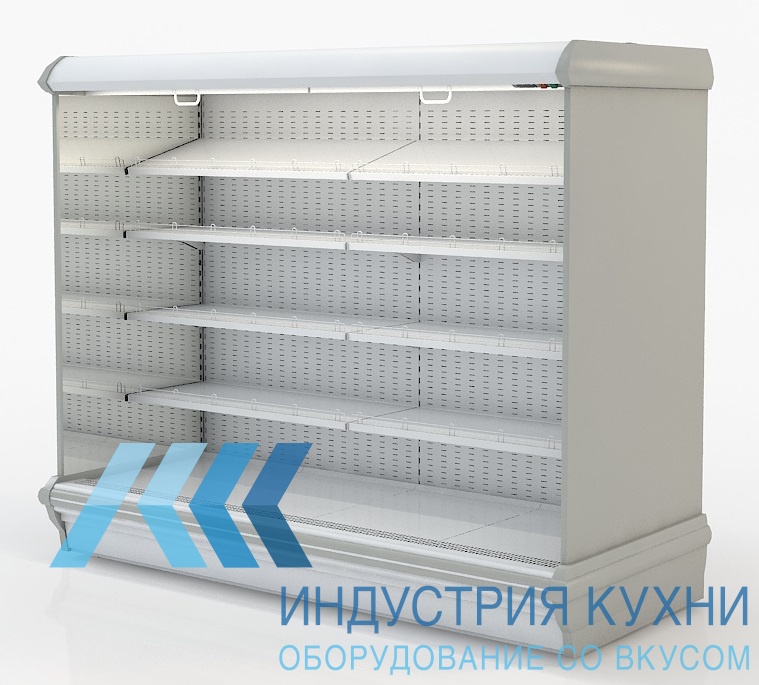 Полки витрины могут быть установлены в одном из трех вариантов наклона. Продукты размещаются на одной большой полке и четырех поменьше. На верхней полке конструкцией предусмотрен металлический ограничитель высотой 30 мм. Если нужно, в витрину можно установить дополнительную полку, оснастить витрину кронштейнами для развешивания колбас. Также, чтобы предотвратить падение продуктов, можно установить на полки проволочные ограничители.