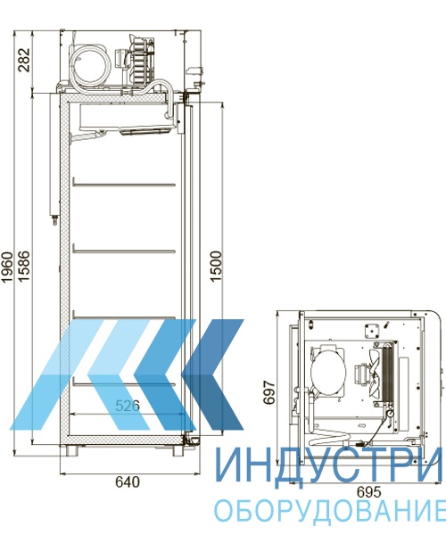 Быстрое и равномерное охлаждение происходит благодаря принудительной вентиляции внутри камеры. Продукты размещаются на 4 полках. Температурный диапазон холодильной камеры от 0 до +6С. Корпус холодильника - сталь с полимерным покрытием. Толщина стенки корпуса 43 мм.