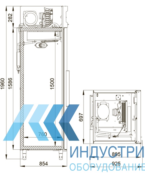 Верхнее расположение холодильного агрегата упрощает облуживание холодильника, улучшает теплообменные показатели. Быстрое и равномерное охлаждение происходит благодаря принудительной вентиляции внутри камеры. Продукты размещаются на 4 полках. Температурный диапазон холодильной камеры от 0 до +6С. Корпус холодильника обшит изнутри и снаружи нержавеющей сталью (кроме задней стенки), а также залит пенополиуретаном. Толщина стенки корпуса 43 мм. Все это в совокупности дает повышенную термоизоляцию, гарантирует долговечность холодильника и механическую прочность корпуса.