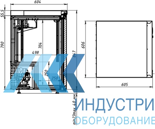 Быстрое и равномерное охлаждение происходит благодаря принудительной вентиляции внутри камеры. Продукты размещаются на 2 полках с максимально допустимой нагрузкой 40 кг. на полку. Температурный диапазон холодильной камеры от +1 до +10С. Толщина стенки корпуса 43 мм. Корпус из стали с полимерным покрытием (снаружи и изнутри), цельнозаливной пенополиуретаном.