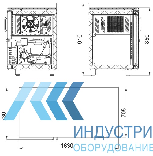 Толщина столешницы 40 мм, есть борт высотой 60 мм. Для удобства встраивания в готовую барную стойку поставка холодильных столов возможна и без столешниц. Толщина стенкок корпуса 43 мм. Холодильный агрегат располагается сбоку. Для удобства обслуживания агрегат выдвигается с фронтальной стороны стола.
