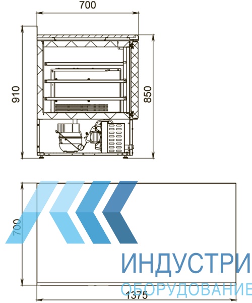 Толщина столешницы 40 мм, есть борт высотой 60 мм. Толщина стенкок корпуса 43 мм. Холодильный агрегат располагается снизу. Ножки регулируются по высоте.