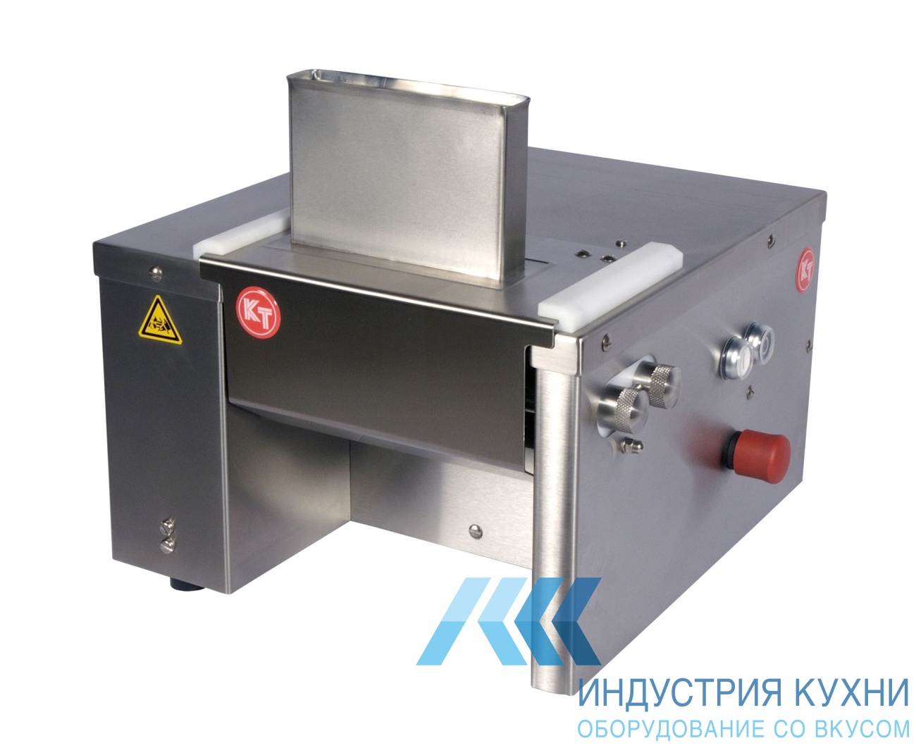 Прибор сделан из нержавеющей стали. Этот материал безопасен для пищевых продуктов. Производительность достаточно высока - до 1200 бифштексов в час, а затраты энергии небольшие. Подача мяса на ножи продумана для избежания травм рук. В случае смещения защитной крышки мотор мнгновенно останавливается. Апарат легко разбирается для мойки или очистки от остатков мяса