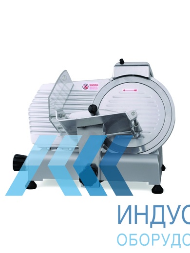 Гастрономическая машина полуавтоматическая, диаметр ножа 250 мм, толщина среза 0 - 12 мм, встроенное затачивающее устройство, материал корпуса - алюминий.