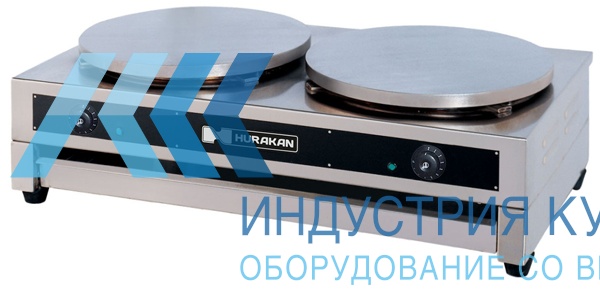 Блинница Hurakan HKN-CDE400 используется на предприятиях общественного питания для выпечки круглых блинов. Блинница имеет две жарочные поверхности из чугуна. А корпус аппарата сделан из нержавеющей стали. Панель управления блинницей - электромеханическая.