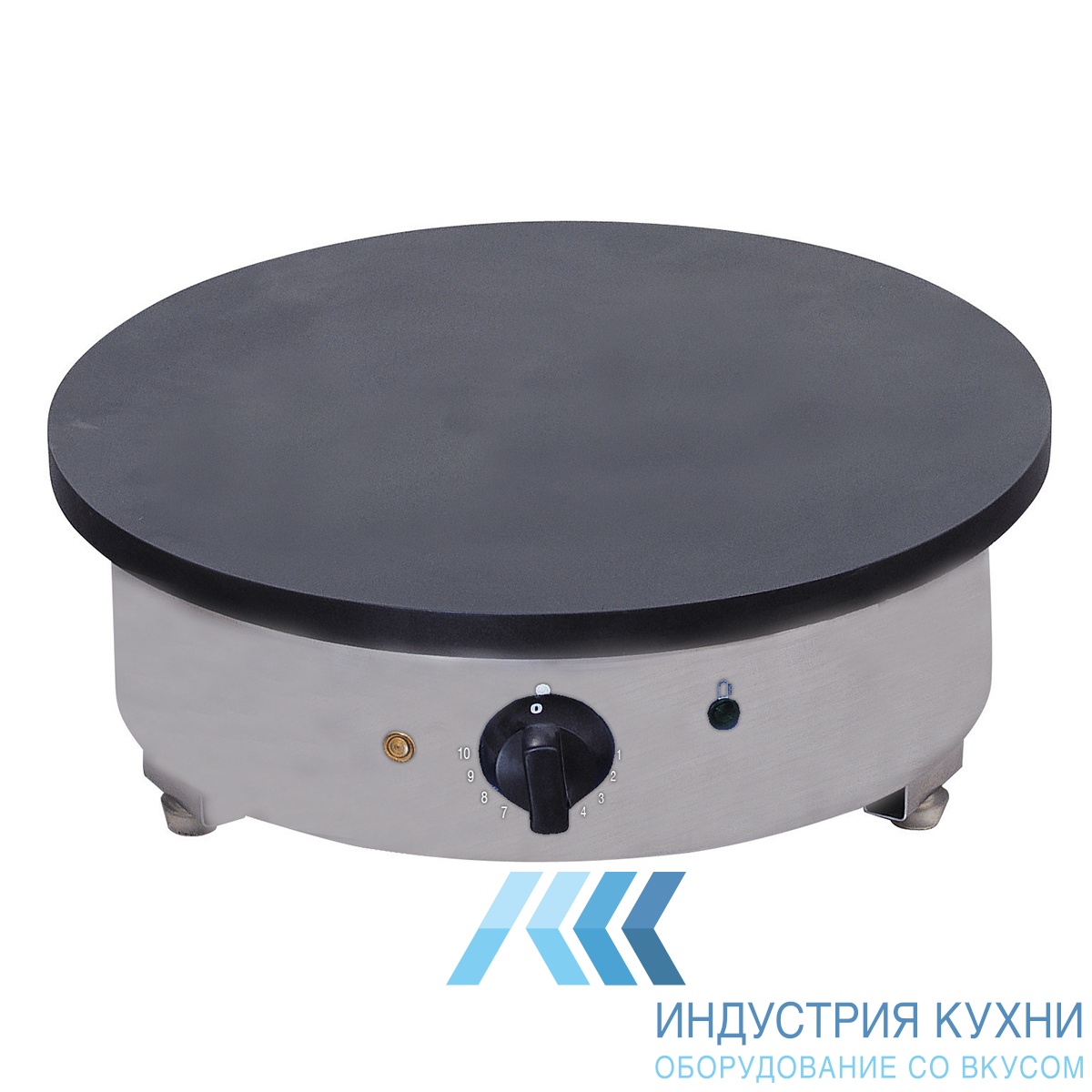 Блинница Ozti OKM-1 - электрическая. Рассчитана на выпечку одного круглого блина диаметром до 400 мм. Корпус блинницы изготовлен из нержавеющей стали, а жарочная поверхность из чугуна.