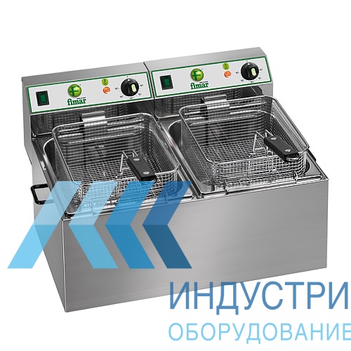 Предназначена для приготовления продуктов в большом количестве жира, имеет две чаши одинакового объема. Корпус, чаши, крышка из нержавеющей стали, выдвижные корзины из хромированной проволоки, ручки корзин и крышек из термоизолирующего пластика. Температура приготовления от 50 до 180 °С. Фритюрница оснащена двойным термостатом для независимого использования.