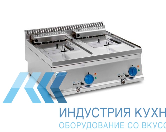 В моделе Tecnoinox FR70E7 две ванны для обжарки по 8 литров, установлен термостат, функция регулировки температурного режима до 190 °С.