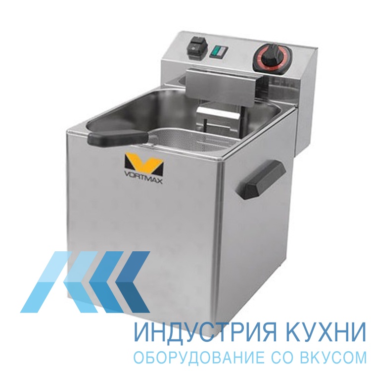 Фритюрница Vortmax F1 Е R5 позволит приготовить пончики, картошку фри, чебуреки, печенье "хворост", блюда в кляре. У неё одна ванна, ёмкость которой составляет пять литров. Корпус и фритюрная ванна сделаны из нержавеющей стали. Ванна цельнотянутая. Оборудование укомплектовано одной корзиной также из нержавейки.