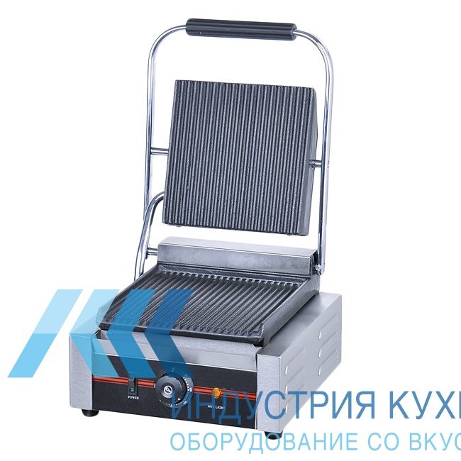 Температура нагрева регулируется. Зона нагрева располагается под нижней поверхностью, а верхняя нагревается уже от нижней. Обе поверхности изготовлены из чугуна. Этот материал отлично аккумулирует тепло, медленно остывает. Поверхности рифленые.