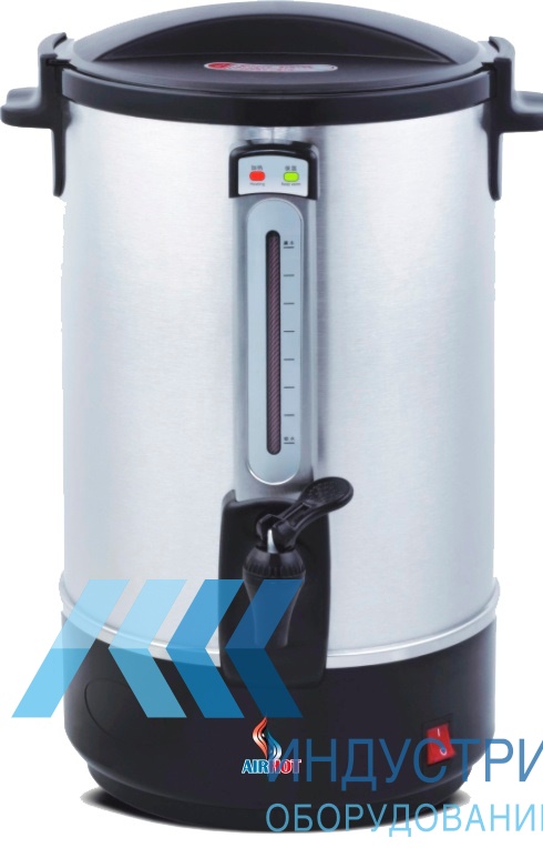 Корпус сделан из нержавеющей стали. Есть индикатор нагрева и аварийный термостат. Если жидкости в кипятильнике меньше минимального уровня, нагрев не включится. Заданный показатель температуры поддерживается автоматически. Кипятильник надежен, прост в использовании и обслуживании.Тэн не съёмный