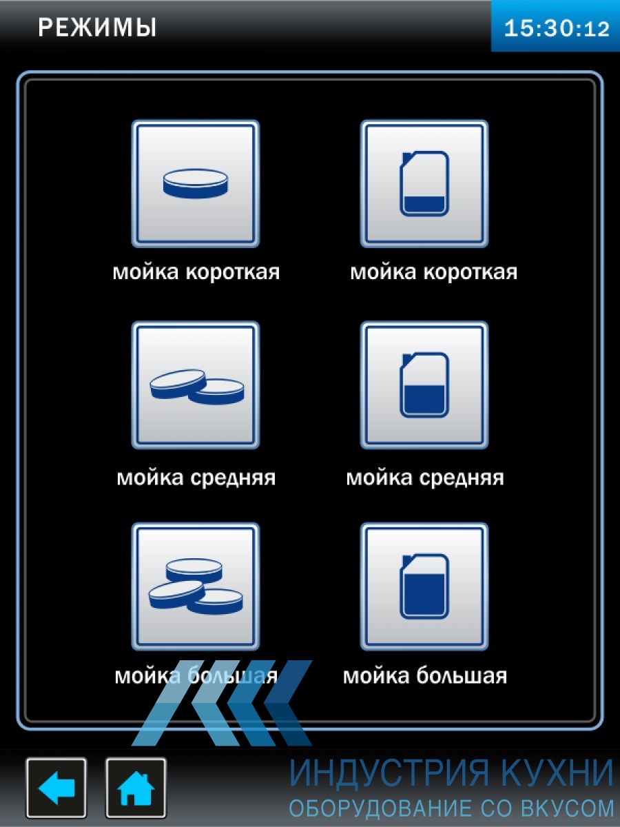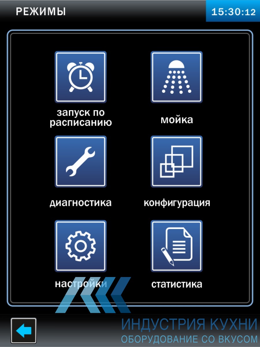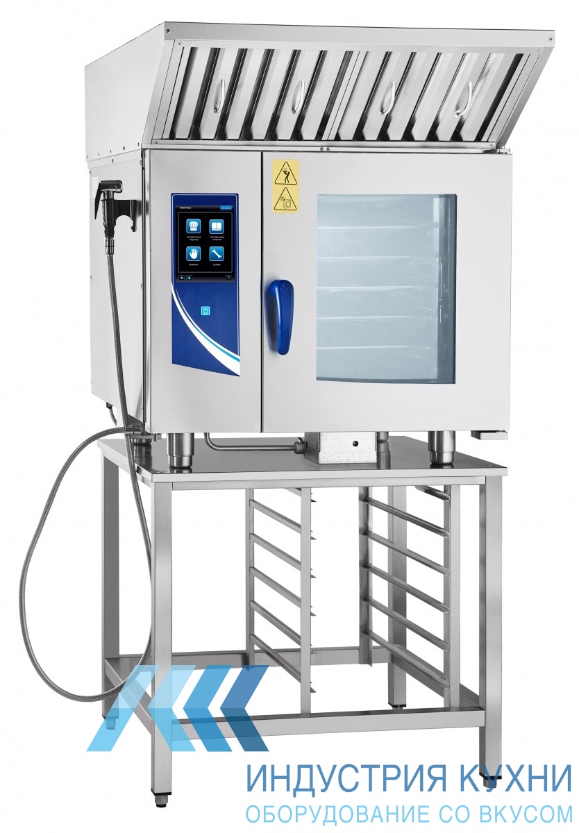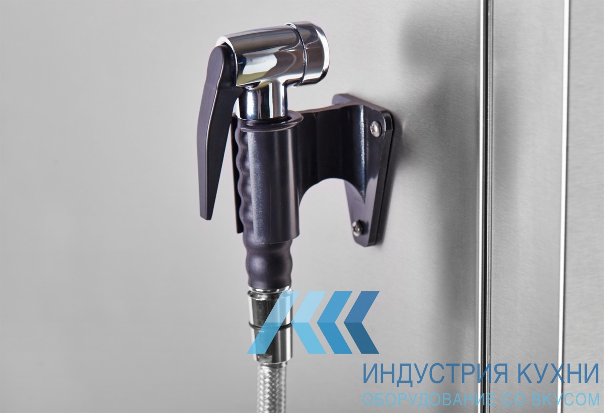 Для очищения пароконвектомата используется встроенная автоматическая мойка с 6 режимами. В ней можно использовать как таблетированные моющие средства, так и жидкие. Есть и ручной душ.