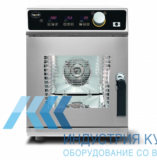 Пароконвектомат Apach AP6D compact - универсальное оборудование, в котором можно жарить, выпекать, бланшировать, варить, готовить на пару. Пароконвектомат заменяет сразу несколько видов теплового оборудования. Эта модель подключается к электричеству. Это компактный аппарат, занимающий мало места на кухне и при этом производительный и многофункциональный.