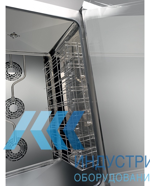 Пароконвектомат выполнен из нержавеющей стали. Внутренняя обшивка камеры также сделана из нержавейки, углы закруглены. Распашная дверца из двойного термостойкого стекла. Для наилучшего контроля процесса приготовления предусмотрена подсветка камеры. Тип пароувлажнения - инжекторный. Осуществляется прямой впрыск воды.