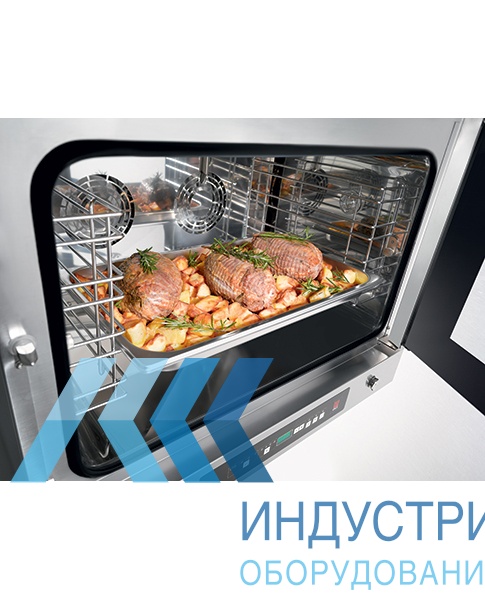 Пароконвектомат выполнен из нержавеющей стали. Внутренняя обшивка камеры также сделана из нержавейки, углы закруглены. Распашная дверца из двойного термостойкого стекла. Для наилучшего контроля процесса приготовления предусмотрена подсветка камеры. Осуществляется прямой впрыск воды.