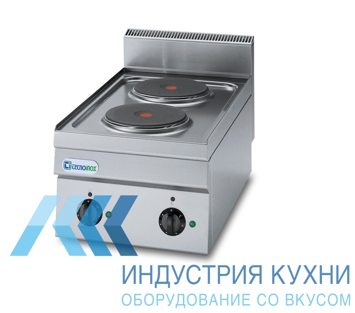 Настольная электрическая плита Tecnoinox PC35E/6/0 116001 имеет 2 круглые конфорки d-180 мм, выполненные из чугуна