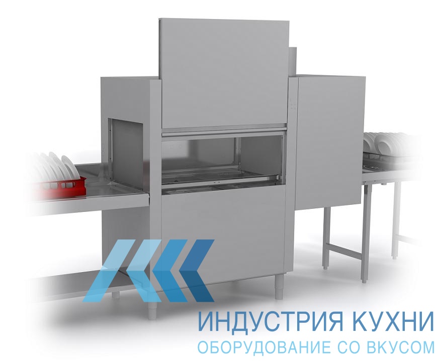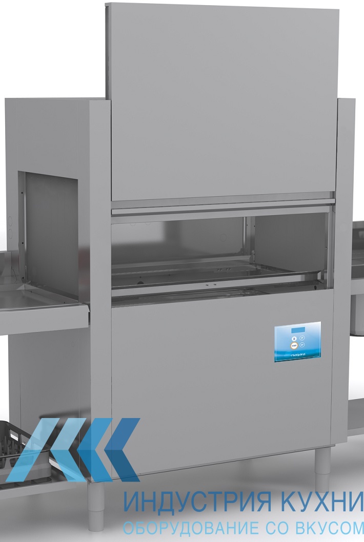 Выход посуды из машины осуществляется справа налево. Предусмотрены 2 цикла мойки длительностью 30 и 60 секунд. Производительность составляет до 120 корзин в час. Машина совместима с корзинами 500х500 мм.